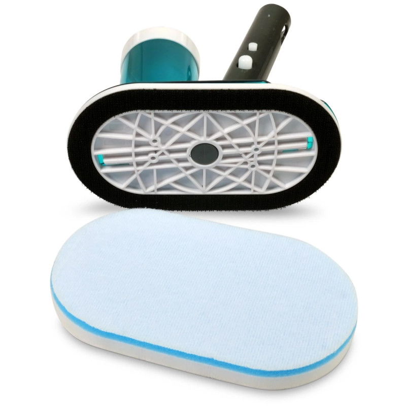 Le réservoir permet de stocker un nettoyant liquide (détartrant, anti-algues, etc.) et de le doser grâce à un bouton ON/OFF, rendant l’application fluide et contrôlée sans gaspillage. L’éponge fixée à la brosse assure une action mécanique efficace, ce qui convient parfaitement pour frotter les taches tenaces ou incrustées.