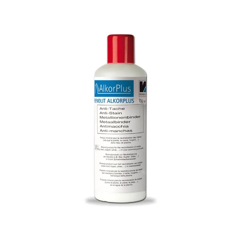Il est donc important d’essayer de diminuer le risque de formation de ces taches pour réduire la présence de métaux dissous dans l’eau. Le traitement de l’eau avec un produit anti-taches ALKORPLUS® 81059 est une méthode simple pour la réduction de la présence de métaux dissous dans l’eau de la piscine.