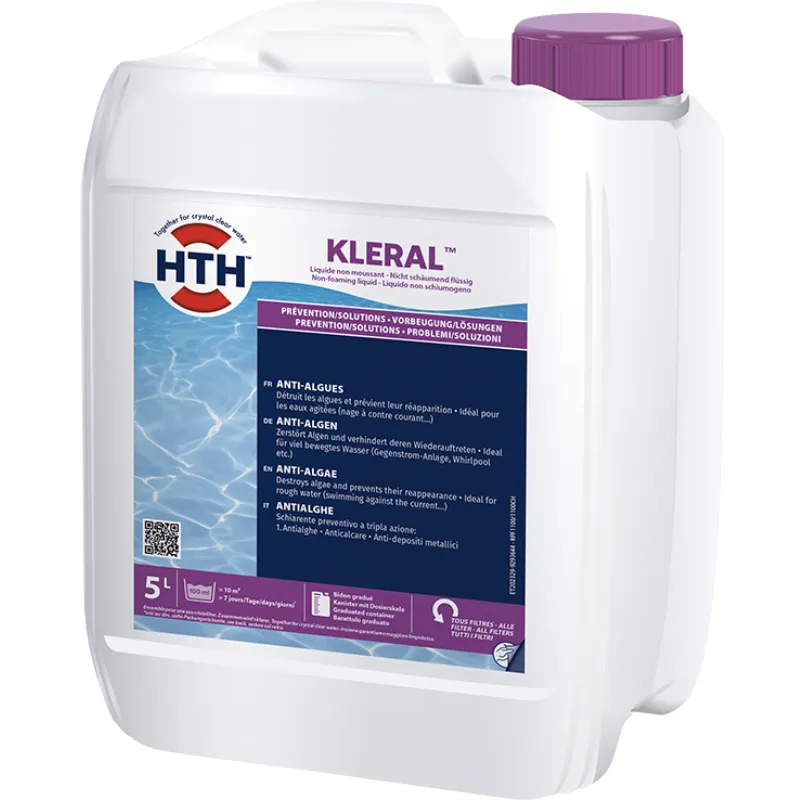 Conçu spécifiquement pour les piscines très agitées, hth KLERAL détruit efficacement les algues et agit également comme un préventif : il prévient alors la réapparition de ces algues.