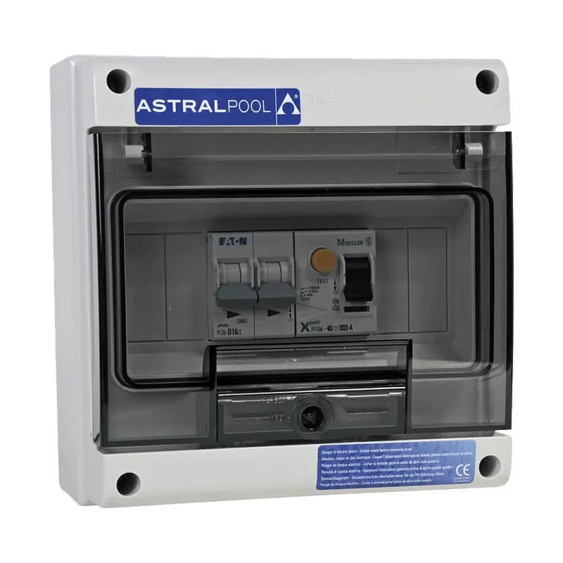 Coffret protection pompe à chaleur, différentiel 30 mA, disjoncteur courbe D, Astral