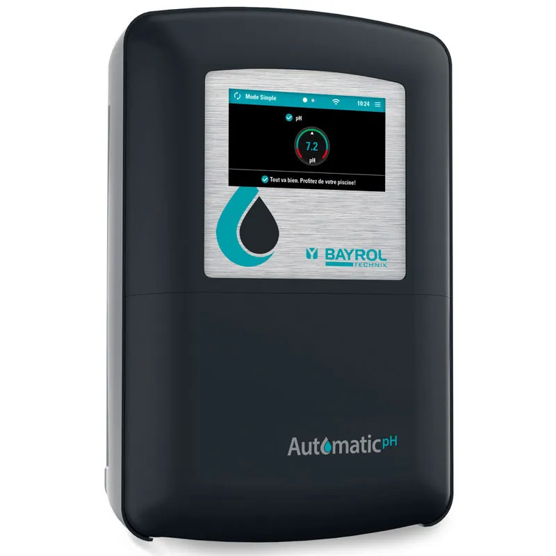 Pur produit issu de la R&D de BAYROL Technik en Allemagne, le Doseur Automatic pH mesure et régule l'équilibre de l'eau en injectant en continu du correcteur pH dans l'eau en fonction des besoins pour garantir un pH stable tout au long de la saison.
