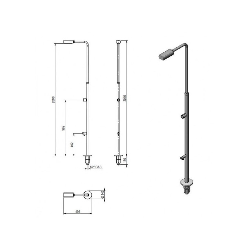 • Matière : acier inoxydable AISI 304 poli, pommeau chromé traité anti-calcaire