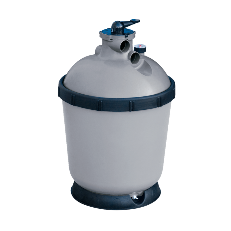 Le Filtre à sable P-FI est un filtre à sable en ABS moulé par injection, qui a été spécialement traité contre les effets de la lumière UV. Une vanne à 6 voies est intégrée dans la partie supérieure du filtre, qui est pourvue de 3 entrées et sorties à coller. Celles-ci ont un diamètre de 50 mm. Le fond du filtre à sable couvre toute la surface du filtre, ce qui vous facilite le montage. Le couvercle du filtre peut être entièrement retiré pour faciliter l'accès au média filtrant. Le filtre est équipé de série d'un socle noir résistant aux UV.