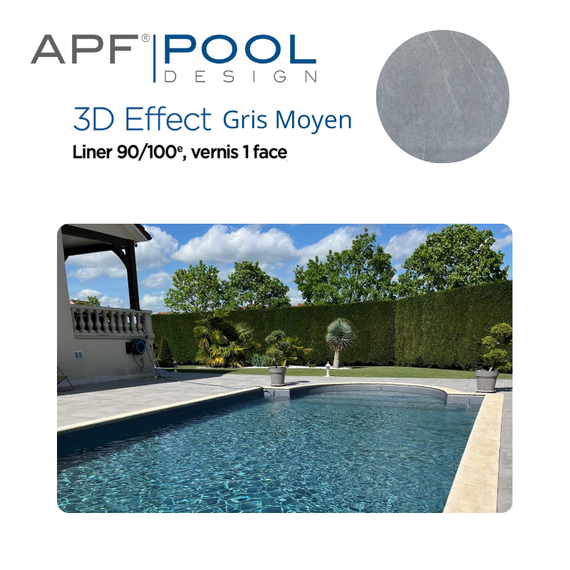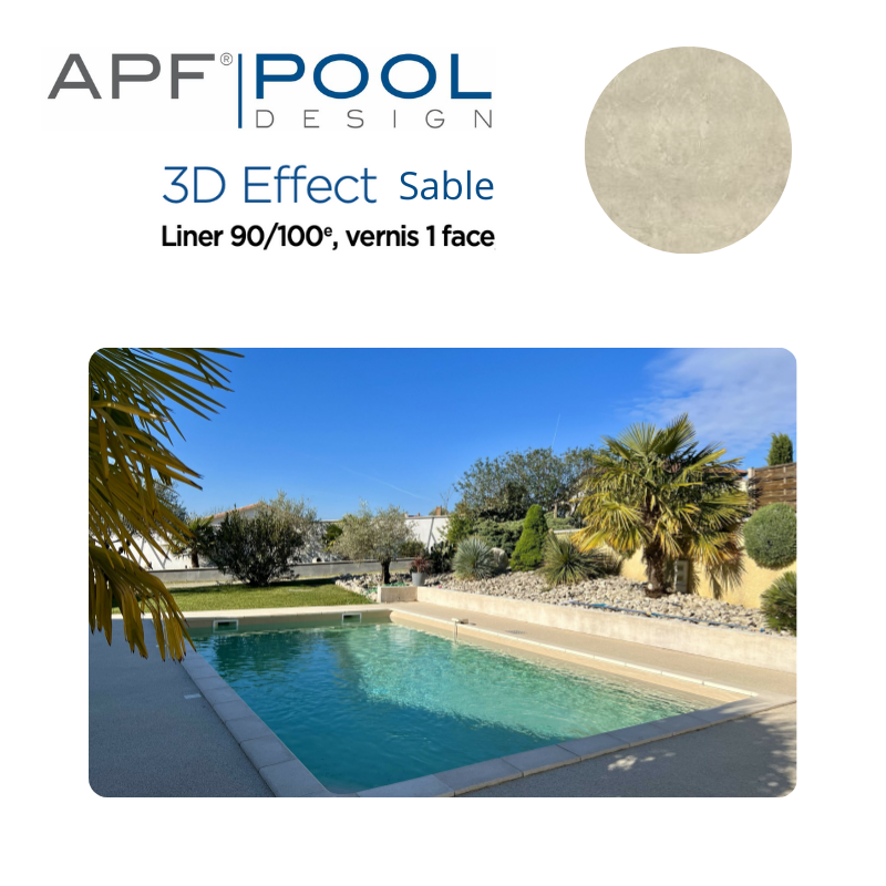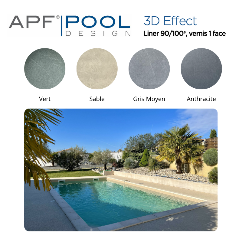 Découvrez le Liner texturé APF 3D EFFECT verni 1 face 90/100ème, l'alliance parfaite entre épaisseur et relief pour un rendu en eau exceptionnel.