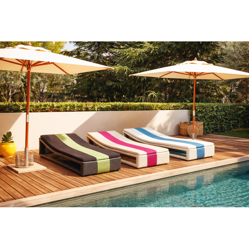 Son design moderne et épuré s’intègre parfaitement dans tous les extérieurs, que ce soit en bord de piscine, sur une terrasse ou dans un jardin.