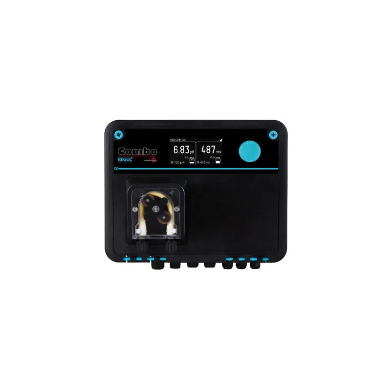 Son écran intuitif affiche simultanément les valeurs du pH et du Redox, ainsi que les consignes et le niveau du bidon pour un contrôle rapide. Fiable, simple à utiliser et fabriqué en France, le Combo est une solution idéale pour une gestion de l’eau précise et sereine.