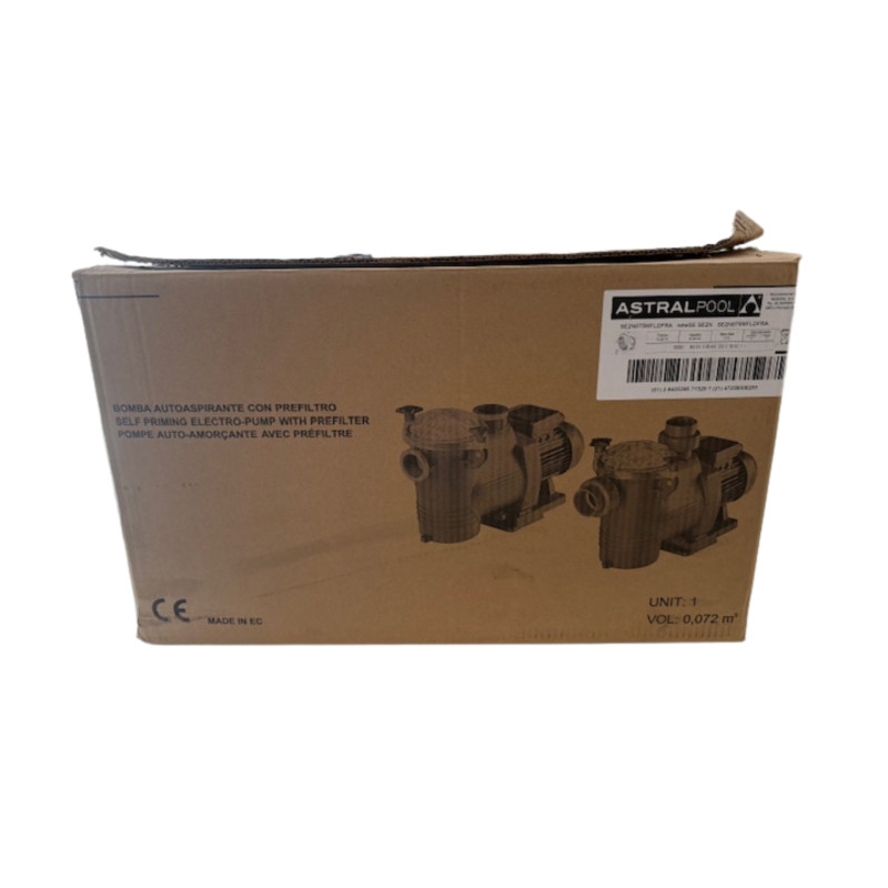 La Pompe Astral New Europa - Série SE2N remplace la pompe de filtration Astral Europa, gagnant ainsi en qualité. Elle s'installe en remplacement des modèles Europa et Super Star II. Les matériaux de qualité utilisés pour sa fabrication en font une pompe très appréciée pour sa résistance et son efficacité. Elle dispose d’un pré-filtre de grande capacité (4L) qui retient les principaux débris et garantit un maximum de passage d’eau. Un couvercle transparent en poly-carbonate permet de contrôler le niveau de propreté du filtre, équipé d’un système de fermeture avec manette de serrage pour plus de simplicité. Son moteur fermé offre un silence de fonctionnement particulièrement appréciable.