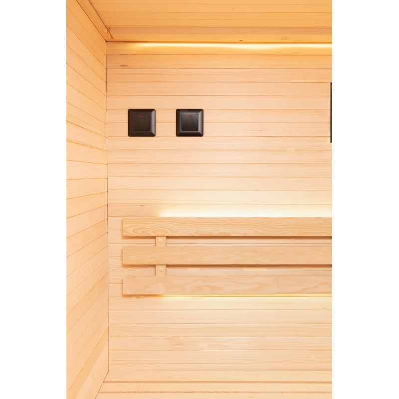 | Équipements | Luminaire d’ambiance, luminaire sous banquette, banquette d’assise, appuie-tête sur paroi, poêle électrique Harvia | |