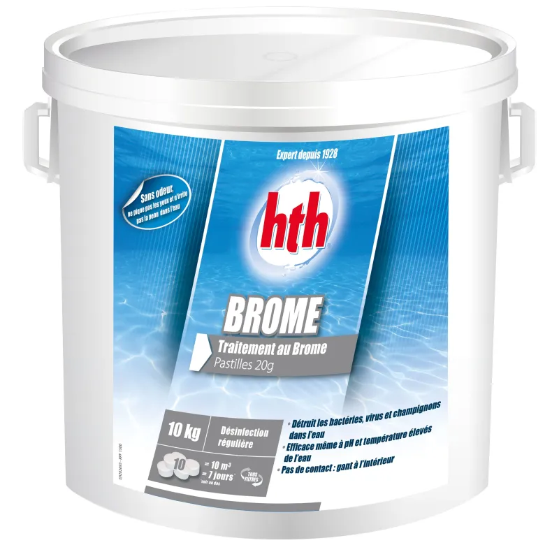 Le brome hth® vous assure un traitement régulier et optimale même lorsque le pH est élevé. Sous forme de pastilles à dissolution lente, le produit prévient et détruit tout type de micro-organismes tel les bactéries, virus, champignons ainsi que les algues.