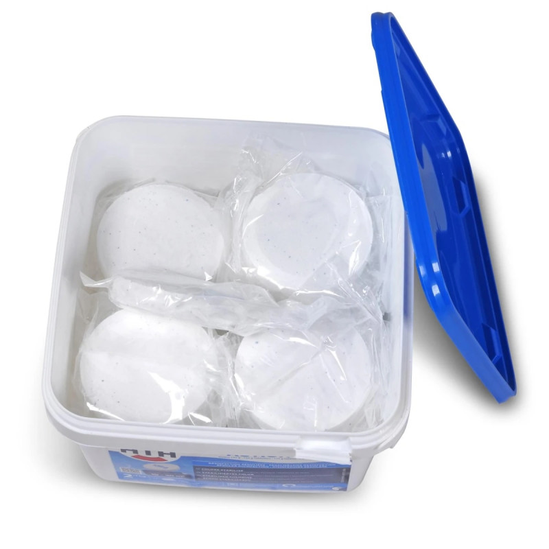 Convient pour piscines hors-sol de 10 à 30m3 sous forme de galets de 135g.