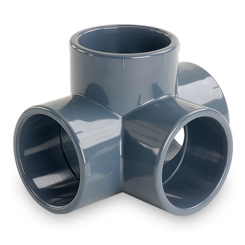 Découvrez le Té PVC 90° 4 voies, idéal pour la distribution et la dérivation de l’eau dans votre installation de filtration piscine. Il permet de raccorder plusieurs tuyaux PVC en toute simplicité, avec une connexion fiable et durable. Compatible avec les diamètres Ø 50 mm et Ø 63 mm.