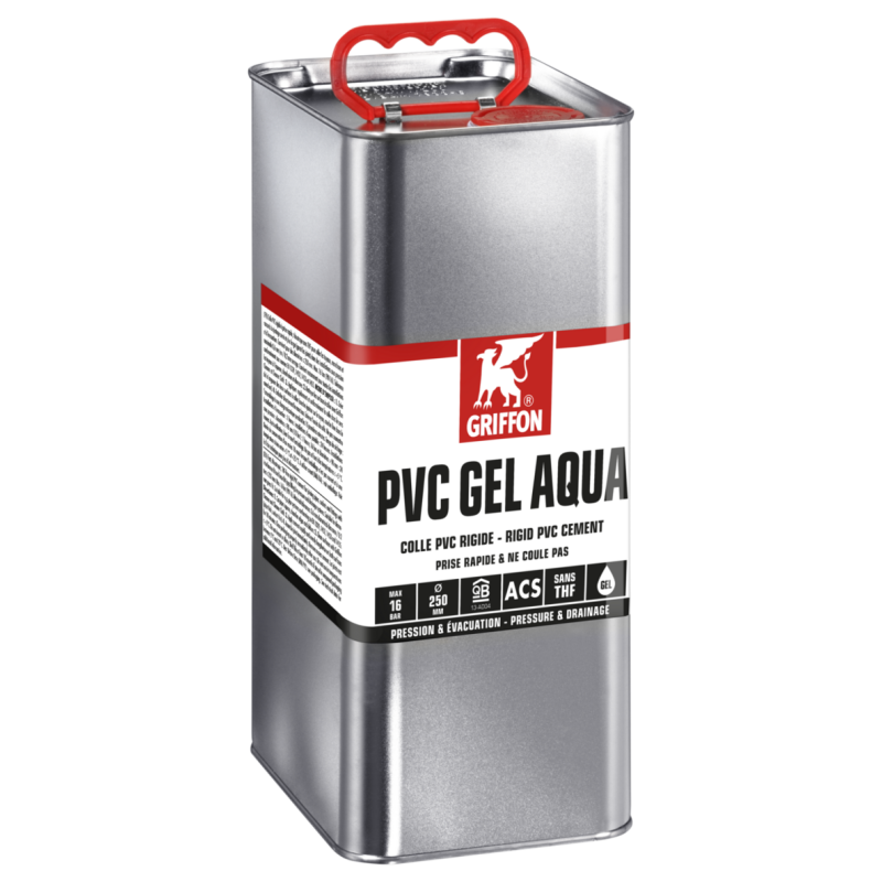 Découvrez la colle PVC Gel AQUA Griffon, idéale pour le collage des tuyaux, manchons et raccords PVC pression. Sa formule en gel permet de garnir les jeux et assure une adhérence optimale, même sur des ajustages larges. Sans THF et adaptée à l’eau potable, elle convient jusqu’à Ø 250 mm et 16 bar. Disponible en 500 ml, 1 L et 5 L.